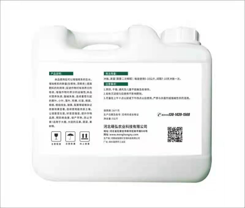 河北萌弘農(nóng)業(yè)科技有限公司是一家集研發(fā)、銷售、生產(chǎn)服務為一體推廣高新科技為主的綜合性企業(yè),目前主要從事高端液肥,葉面肥,沖施肥的研發(fā)生產(chǎn)和銷售。企業(yè)專注于作物增產(chǎn)的營養(yǎng)方案開發(fā),秉承讓作物營養(yǎng)科學規(guī)范之道,為農(nóng)業(yè)豐產(chǎn)助力。